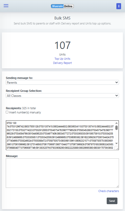 The Bulk SMS feature is an essential communication tool that allows your school to send critical, timely, and concise messages directly to the mobile devices of parents and staff.